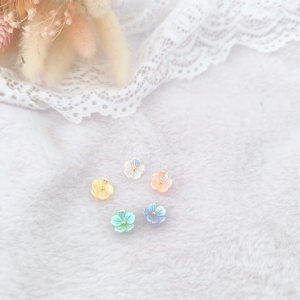 - Deux fleurs effet nacré au choix de 10 mm, parmi 5 coloris