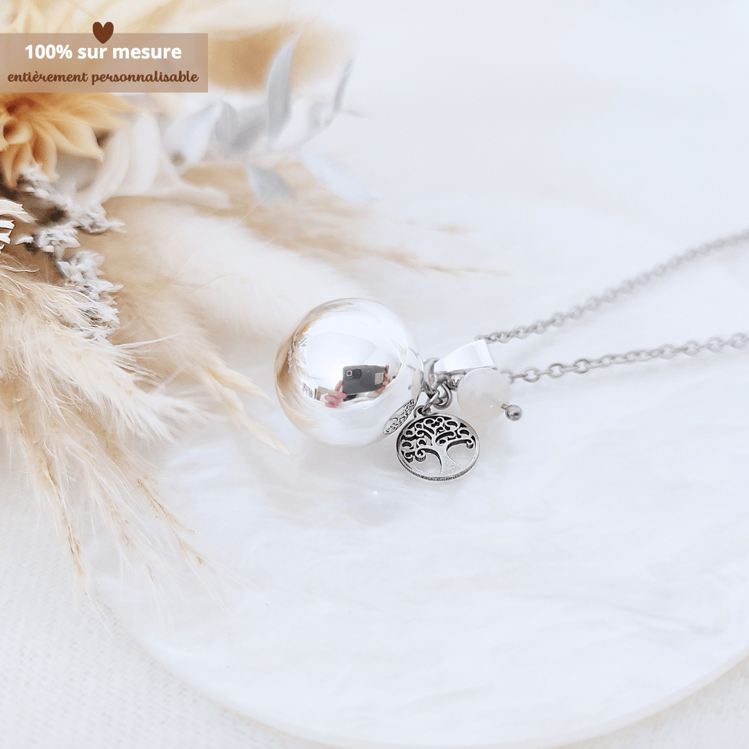 Créez un bijou unique avec ce bola de grossesse personnalisé, alliant perles naturelles et breloques riches de sens. Conçu sur mesure selon vos envies, il symbolise votre parcours et sublime votre grossesse tout en diffusant une mélodie apaisante.