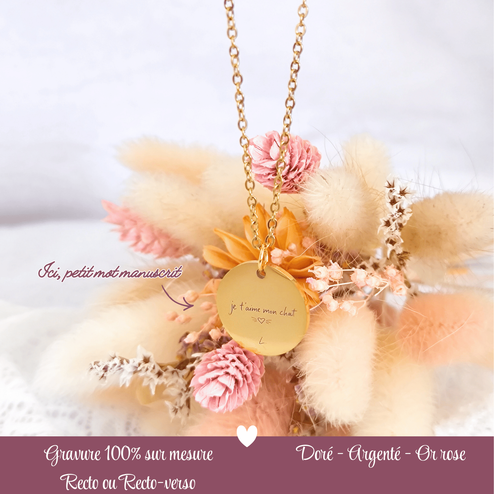 Exprimez votre amour à travers un bijou unique, pensé pour célébrer votre lien. Ce collier personnalisable avec médaillon gravé vous permet d’inscrire un prénom, une date importante, un mot doux ou un symbole qui vous unit.