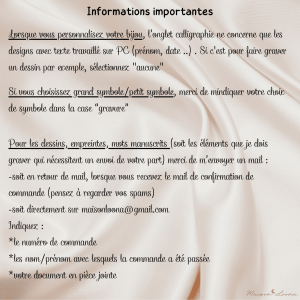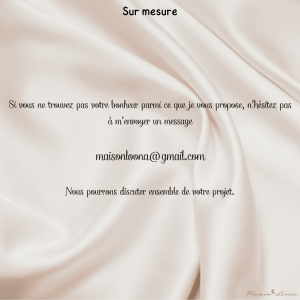 Pour cela, ou si vous avez quelconque autre demande, merci de me contacter avant le passage de votre commande car le prix ne sera pas le même selon votre souhait.