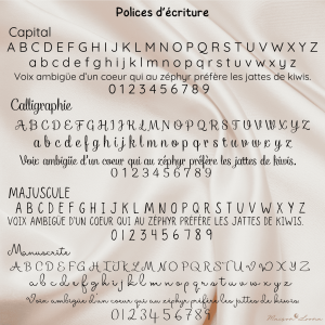 ♥ Pour la conception, ils peuvent varier mais ils vous sont toujours indiqués. Vous pouvez donc en prendre connaissance avant de passer commande