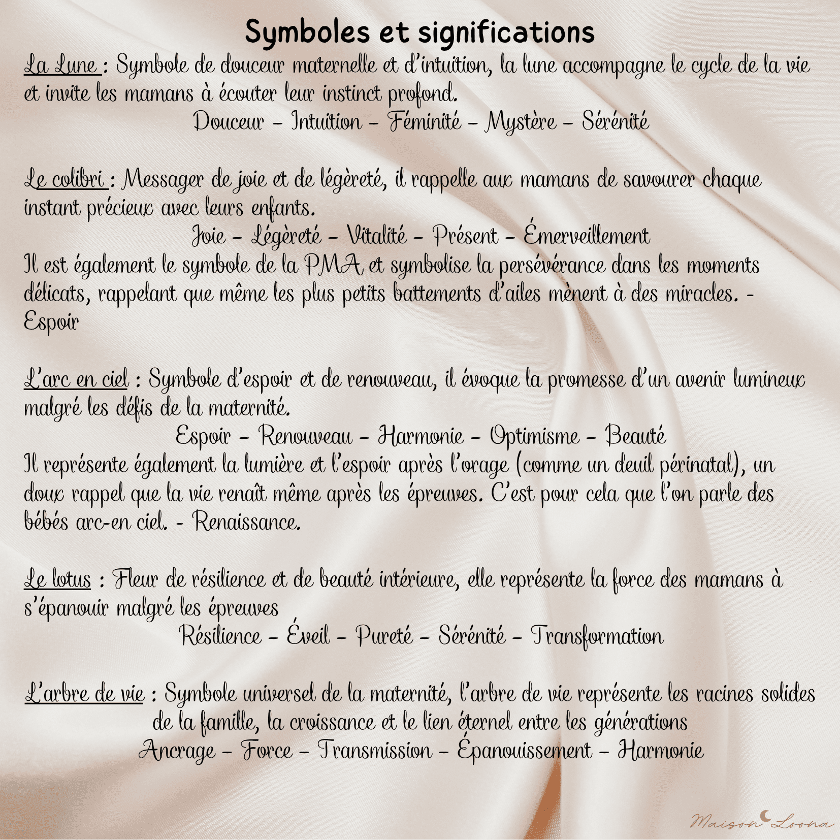♥ Le coeur : Représentation universelle de l’amour, il exprime la tendresse infinie et le lien unique entre une maman et son enfant.