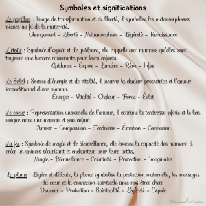 ♥ L’étoile : Symbole d’espoir et de guidance, elle rappelle aux mamans qu’elles sont toujours une lumière rassurante pour leurs enfants.